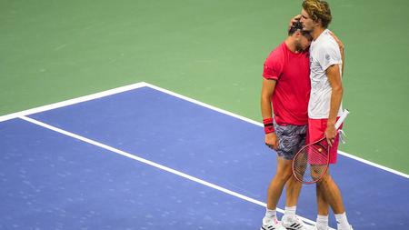 Alexander zverev embraces dominic thiem at the end of the match.